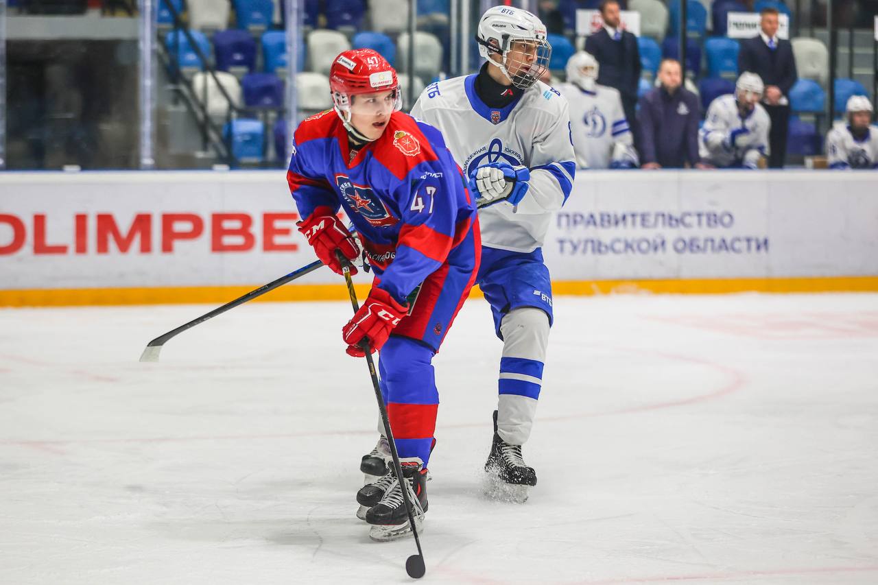 С первого периода «Динамо М» активно атаковало. На пятой минуте хоккеист гостей отправился в штрафбокс. «Михайловцы» четыре минуты играли в большинстве. Его они начали активно. Максим Рябышев исполнил мощный бросок, но шайба пролетела мимо ворот. Также Яромир Ермаков нагружал вратаря соперника бросками, но открыть счет не получилось. Бело-голубые много времени проводили в зоне Зарубина и вышли вперед. У москвичей еще были хорошие моменты, чтобы удвоить свое преимущество, но оборона туляков все контролировала.