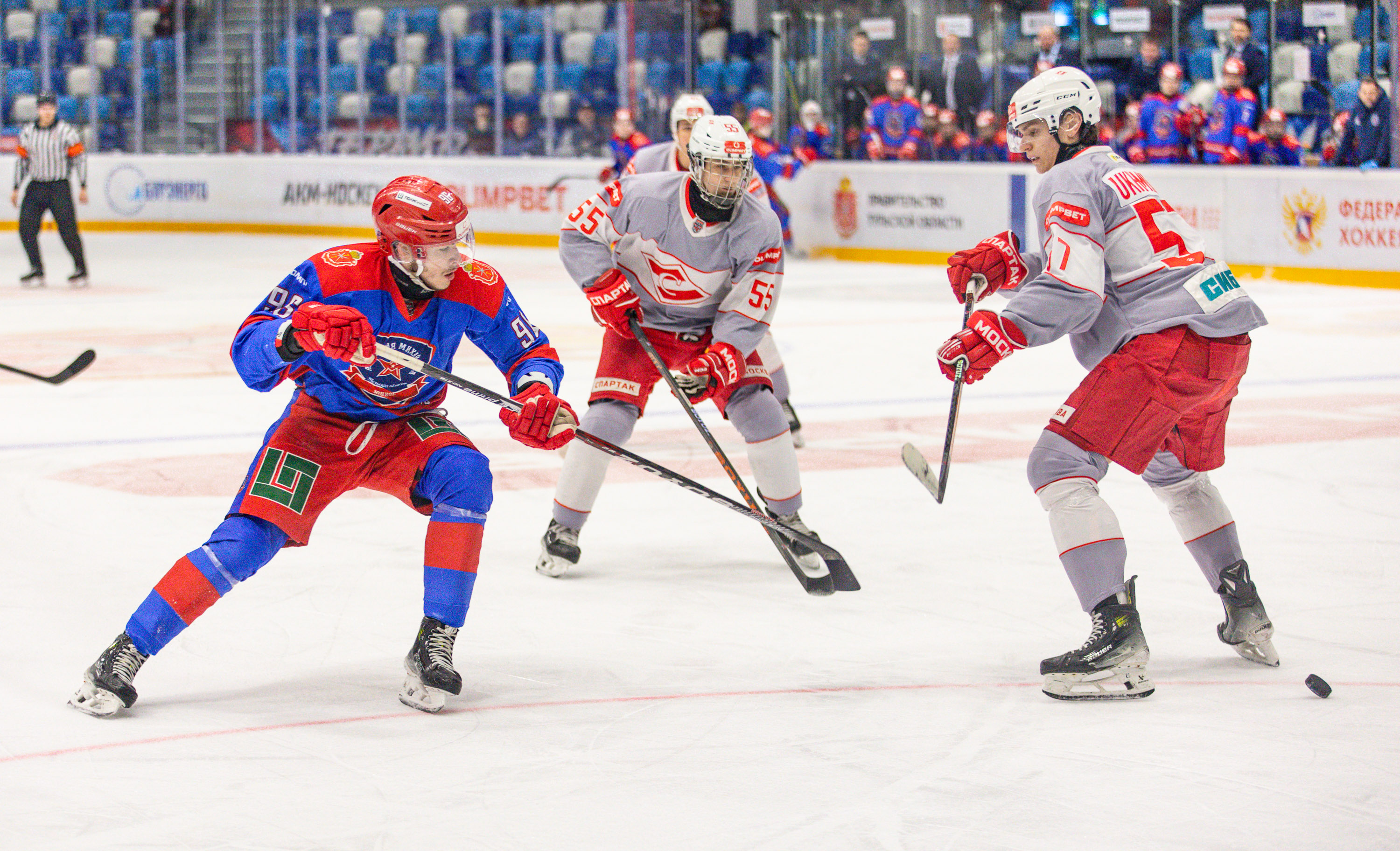 Гости с первых минут показывали хороший хоккей и на второй минуте реализовали большинство – 0:1. Затем игра стала ровной, но москвичи продолжали давить и удвоили преимущество – 0:2.