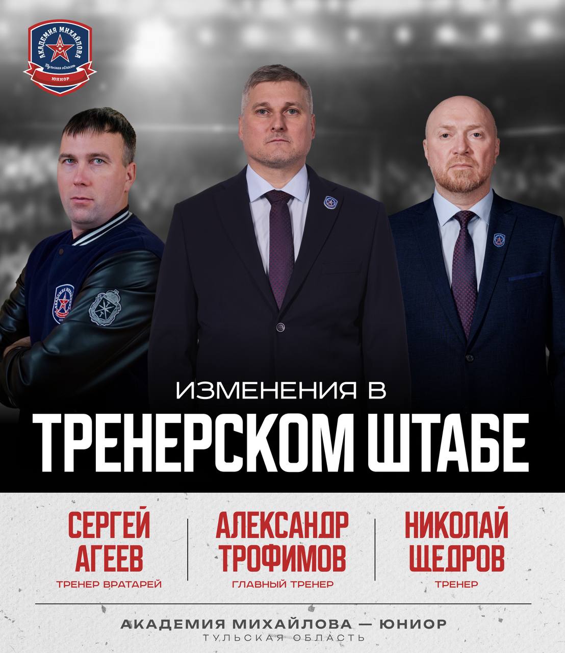 В тренерском штабе «Академии Михайлова-Юниор» произошли изменения. Новым главным тренером тульского коллектива назначен Александр Трофимов.