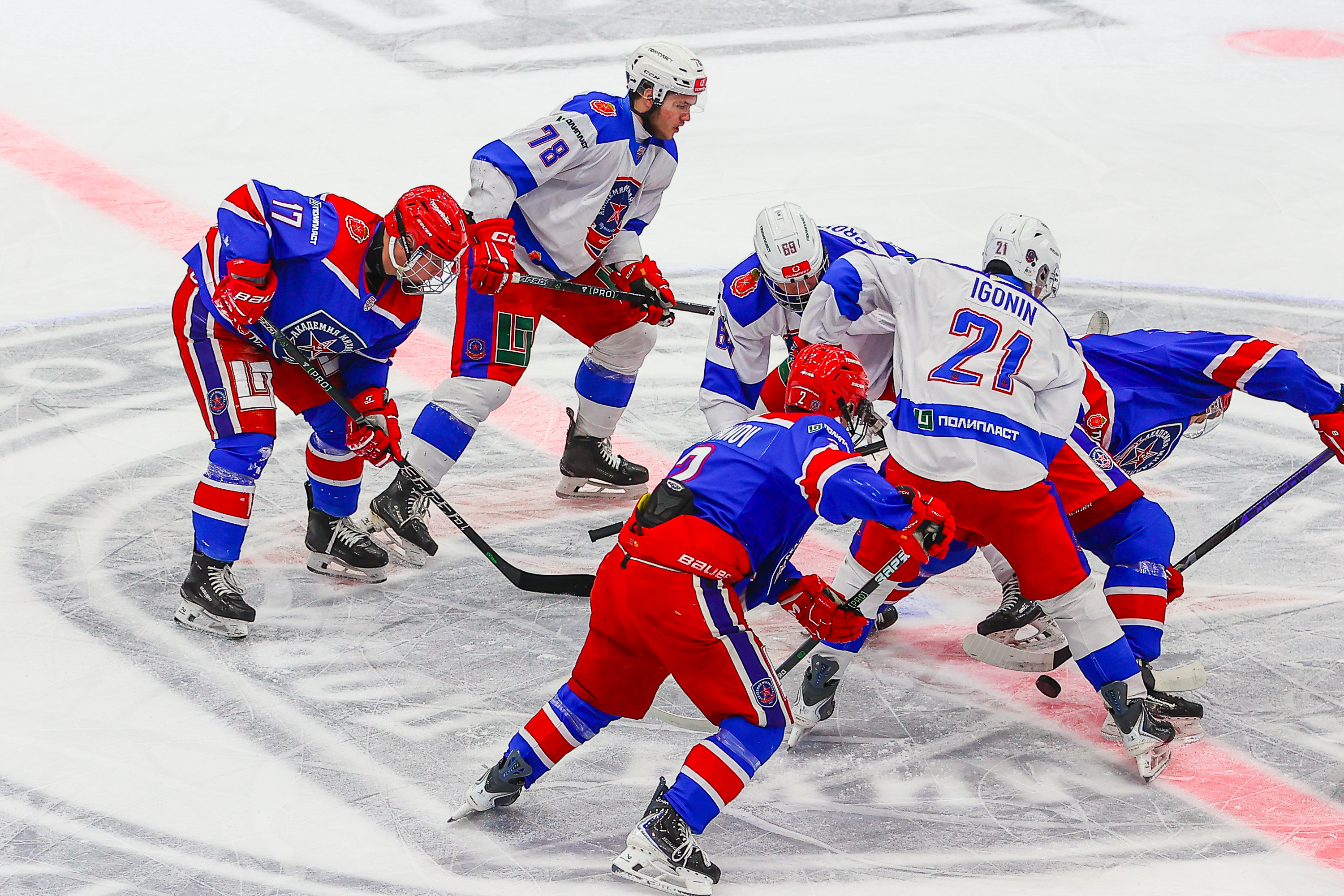 Первый период оказался равный. «Академия Михайлова-Юниор» два раза играли в большинстве, но их реализовать не получилось. Соперник три раза выходил один в ноль, но Иван Филатов сыграл надежно. Коллективы ушли на перерыв при равном счете – 0:0.